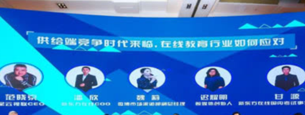 会上,新东方在线COO潘欣、微博市场渠道部总经理魏莉、鲸媒体创始人迟耀明、新东方在线国内考试事业部总经理甘源与主持人星云视联CEO范晓京齐聚一堂,展开题为《供给端竞争时代来临 在线教育如何应对》的圆桌讨论,现场行业大咖思想精彩碰撞,将会议氛围推至高潮。