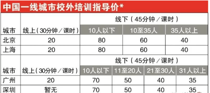 与过去动辄上百乃至数百元的市场价相比,各地指导价都大幅度下调。业内人士告诉本报,指导价普遍不到市场价一半。再扣除房租、师资和水电费等开支,培训机构几乎没有利润。许多机构目前已处于入不敷出状态,若严格执行指导价,估计有更多机构将关门转型。