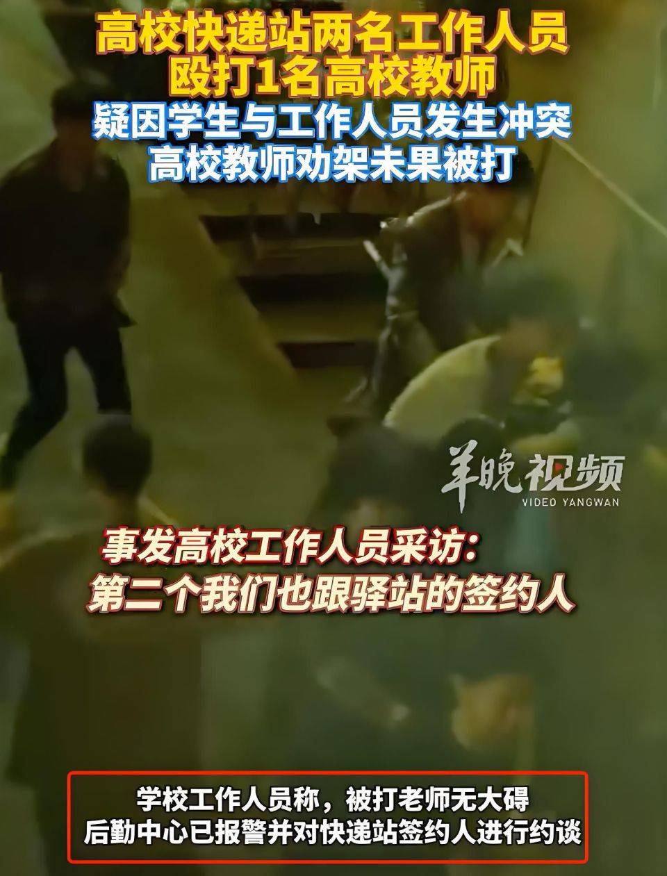 原标题: 劝架老师反被打!1名教师在高校快递站被2名工作人员打!