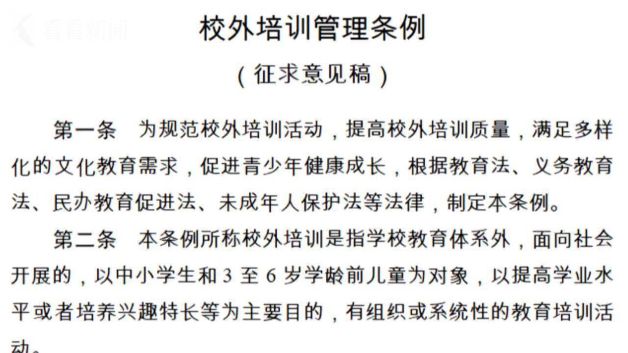 原标题:这份事关校外培训的条例征求意见 透露了些什么?