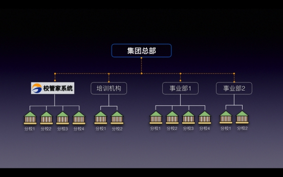 通过教培总部智能数据中心这个上层管理平台,校管家整个系统体系就可以更加灵活地部署,各个子系统之间可分可合。校管家的用户可以根据自身发展和组织结构调整的需要,对校管家系统进行灵活的拆分或者合并。