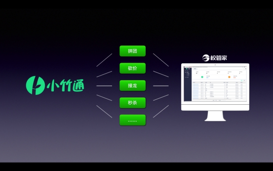 在发布会上,伍星展示了目前小竹通系统上已经发布的功能:拼团、接龙、秒杀、砍价等,培训学校可以基于这些功能,策划形式多样的线上招生活动,实现裂变式推广。