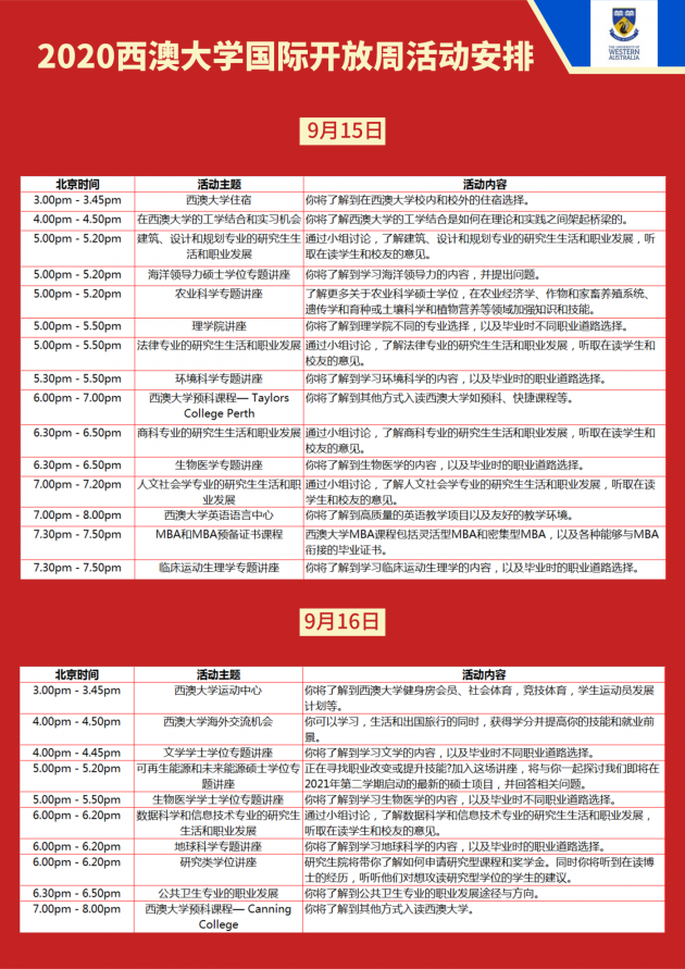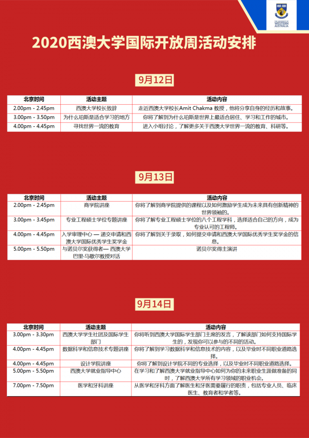 开放周报名通道:请随时关注西澳大学微信公众号动态(“西澳大学UWA”),获取开放周最新资讯。