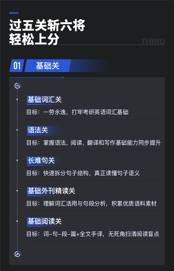 零基础考研全程规划和复习指导,从2021年10月份到2022年12月,预备起步、基础夯实、强化巩固、冲刺提升、实战点睛五大阶段让你完成逐级通关。