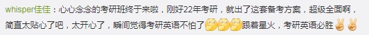 考研新品发布前夕,好多学生纷纷给星火英语留言说:“为啥不早一点出?我今年考,完美错过了!”“终于等到星火!”“今年考不上的话我二战就跟星火学了!”“心心念念的考研班终于来啦,刚好22年考研,就出了这套备考方案,超级全面啊,简直太贴心了,太开心了,瞬间觉得考研英语不怕了!跟着星火,考研英语必胜!”