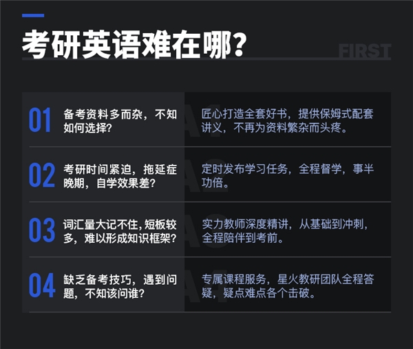 针对这些问题:星火英语考研通关包的解决方案是——长线备考,厚积薄发。