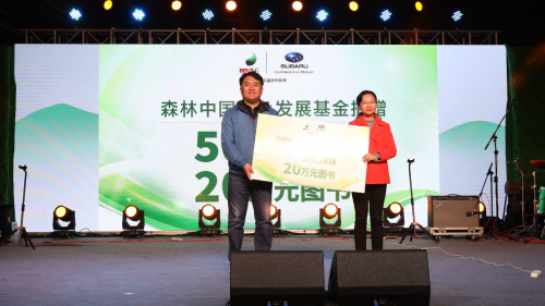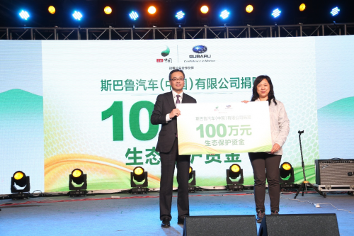 在2018森林中国公益盛典晚会现场,除森林中国向当地村民提供专家义诊、捐赠网课和图书、捐赠学习用品及开展绘美家园公益课堂以外,森林中国战略公益合作伙伴斯巴鲁汽车(中国)有限公司在其公益十周年之际现场向中国野生动物保护协会捐赠100万元生态保护资金,继续支持“斯巴鲁生态保护奖”的评选工作,用于奖励全国林业系统的生态保护工作者。