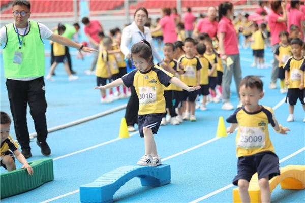 在赛事设置上,组委会依据幼儿不同年龄段身心发展特点,共设迷你跨栏跑、短跑、软性标枪、篮球、立定跳远、跳绳、平衡木、风火轮8个项目。