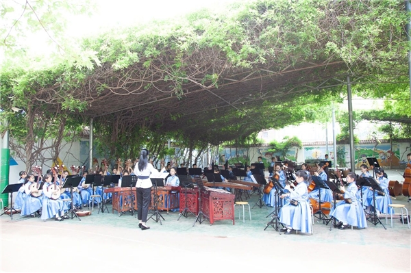 展示活动在皮影、跳绳、轮滑、华乐团等学生的现场表演中拉开帷幕。