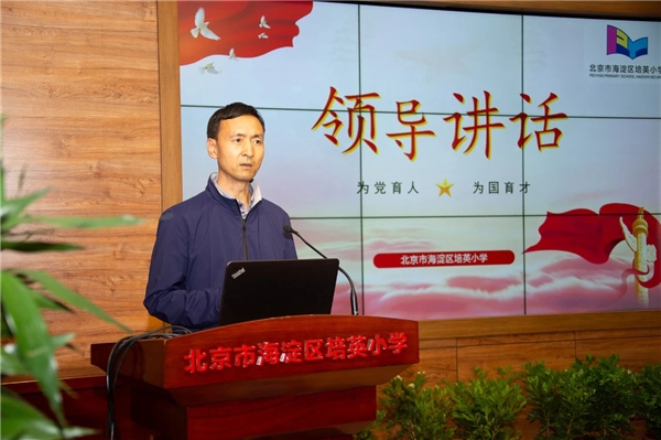 在“智慧工作,快乐生活”办学理念的指引下,2021年6月2日,北京市海淀区培英小学举办了以“为党育人 为国育才”为主题的智乐教育成果交流展示会,向建党百年献礼,为学校家本课程建设五周年庆生。此次会议由北京教育科学研究院德育研究中心主办,北京市海淀区培英小学承办。原北京市教育科学研究院院长、著名学者文喆先生,北京教育科学研究院德育研究中心主任谢春风、马金鹤教授,北京市海淀区教育科学研究院吴颖惠院长、闫顺林主任、陈尧、庞奕老师,北京市海淀区教师进修学校校长助理马耀国、许长明老师,万寿路学区程莉主任,万寿路青少年活动中心王大海主任,万寿路街道冯军主任、孟庆文副主任;中央军委训练管理部政治局副主任范云,军事科学院国防工程研究院副政治委员田跃峰,解放军总医院政治工作部副主任李学富,军事科学院国防科技创新研究院政治处主任王欣田,军事医学研究院政治工作处副主任王来国,3209赖仁义厂长以及北京市各区县德育研究中心领导及学校领导教师,参加了此次展示会。