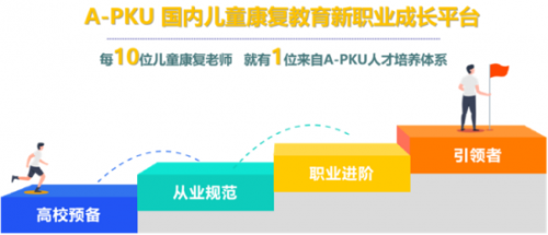 2019年,北大医疗脑健康迈出了影响儿童康复人才职业发展的重大一步——联合北京大学医学继续教育学院发布“A-PKU儿童康复人才培养体系”,首次定义了什么是好的康复师、如何成为好的康复师,更建立了针对儿童康复从业者的全阶职业成长体系,即一条从初入职场、从初级到高级、从专业人员到优秀管理者的阶梯式成长路径,以满足康复从业者的不同职业发展需求。