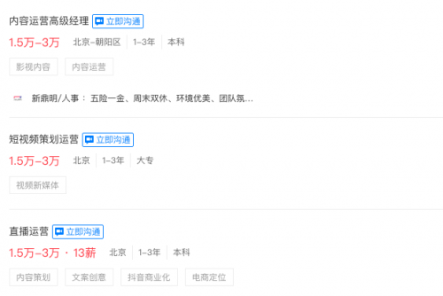 进入招聘网站,搜索「全媒体运营师」相关岗位,可以发现这个行业遍布大量城市,薪资普遍在8,000 元/月以上,有些城市能达到 8,000-12,000 元/月,更有个别机构开出了 1.5,000+的月薪!