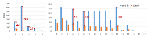 普通卷积层(左)和逐点卷积层加速比