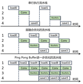 为了进一步提高计算流水,他们将卷积(Conv)和偏移、激活(BiasReLU)融合起来并加入PingPong Buffer。
