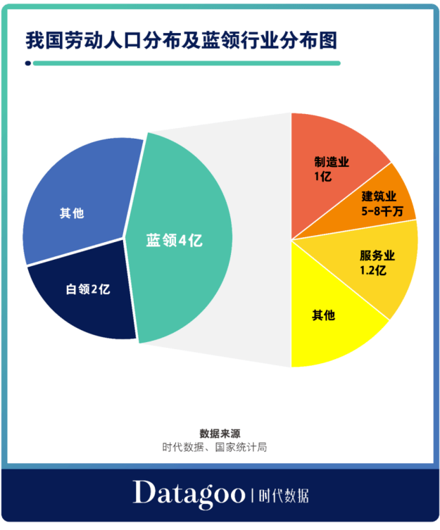 但事实是,在我国庞大的9亿劳动群体中,有1.2亿新蓝领,和2.88亿农民工,蓝领群体是白领群体的两倍。