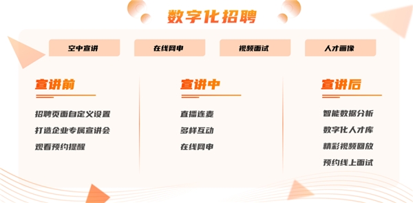 针对空中宣讲会场景,获得场景视频可以提供一套成熟的解决方案,帮助企业线上招聘。
