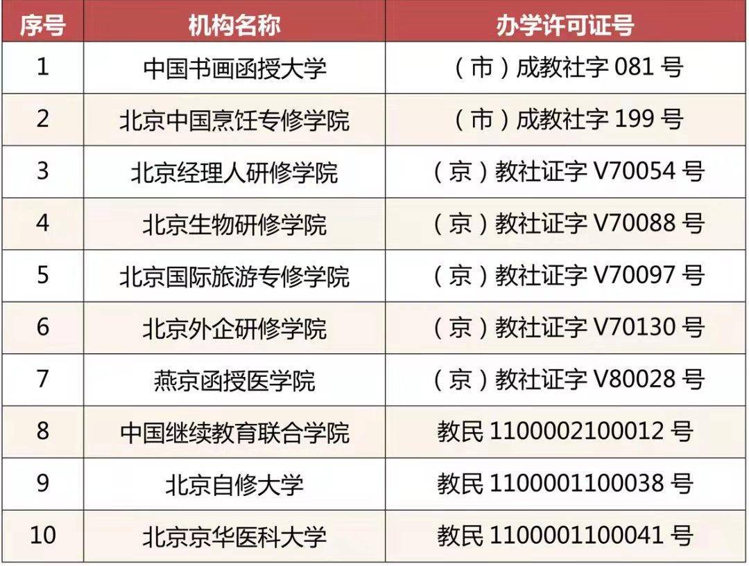 公告称,中国书画函授大学、北京中国烹饪专修学院、北京经理人研修学院等10所民办学校办学许可证到期后未依法予以延续。北京市教委表示,根据有关规定,该10所民办学校办学许可证自公告之日起注销。