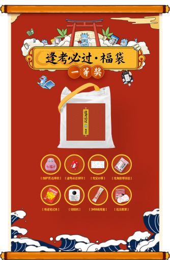 除了冲刺好课,龙角散还推出了“逢考必过”福袋,为考生们的努力“加持”。福袋内有考试季背书必备的龙角散润喉糖组合装、守护备考空间健康的加护灵、还有网红错题机、有道解压笔记本以及龙角散考试五件套等趣味周边。