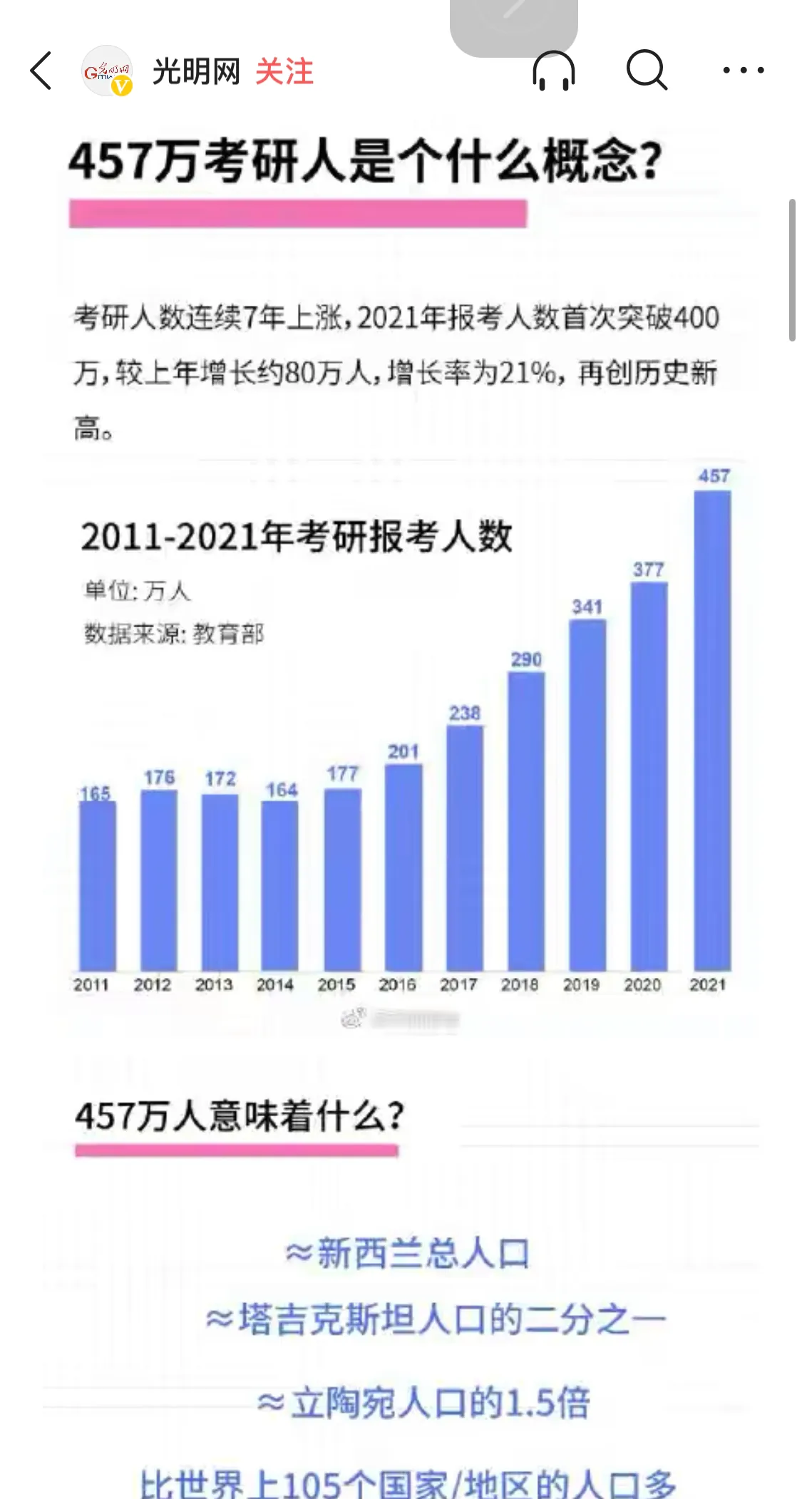 原标题:457万人考研是什么概念? 变相也说明找工作竞争激烈