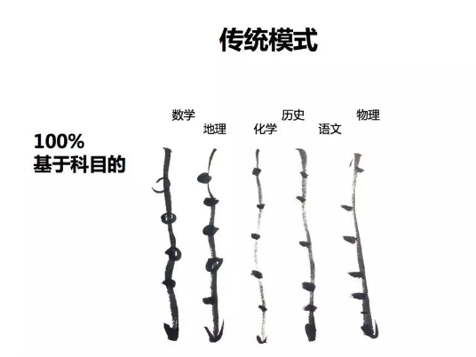 但更有意思的是它的教育模式。传统的教育基本上都是基于科目的。也就是我们把知识切分成各个语文、数学、地理、化学、历史、生物等等科目,知识和知识之间并没有太多的交叉,甚至还有竞争。而我们所面对的这个世界恰恰不是由科目来决定的。