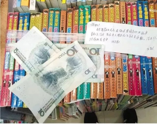 家长发现之后写下道歉信,并留下全部书款 40 元钱,一大早从门缝里塞进书店。