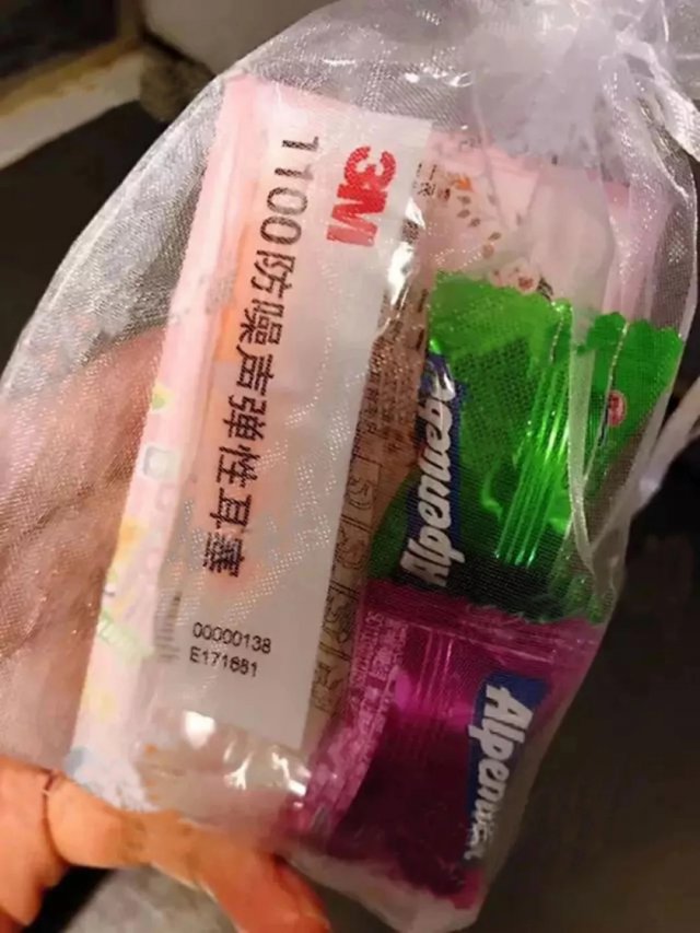 于是她给大家准备了小礼物,里边装着耳塞、糖果和小卡片。