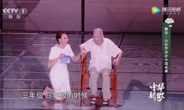 她跪在台上和老先生谈笑风生,却给观众一种恰到好处的舒服自然和如沐春风。