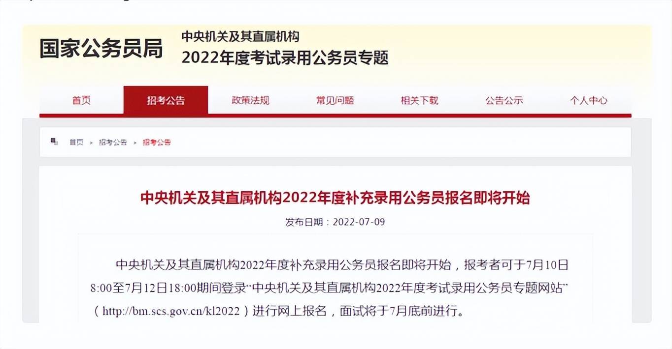 想报名的毕业生直接登录中央机关及其直属机构的2022年度考试录用公务员飞专题网站直接进行网上报名就行了,面试环节是将于7月底前安排。