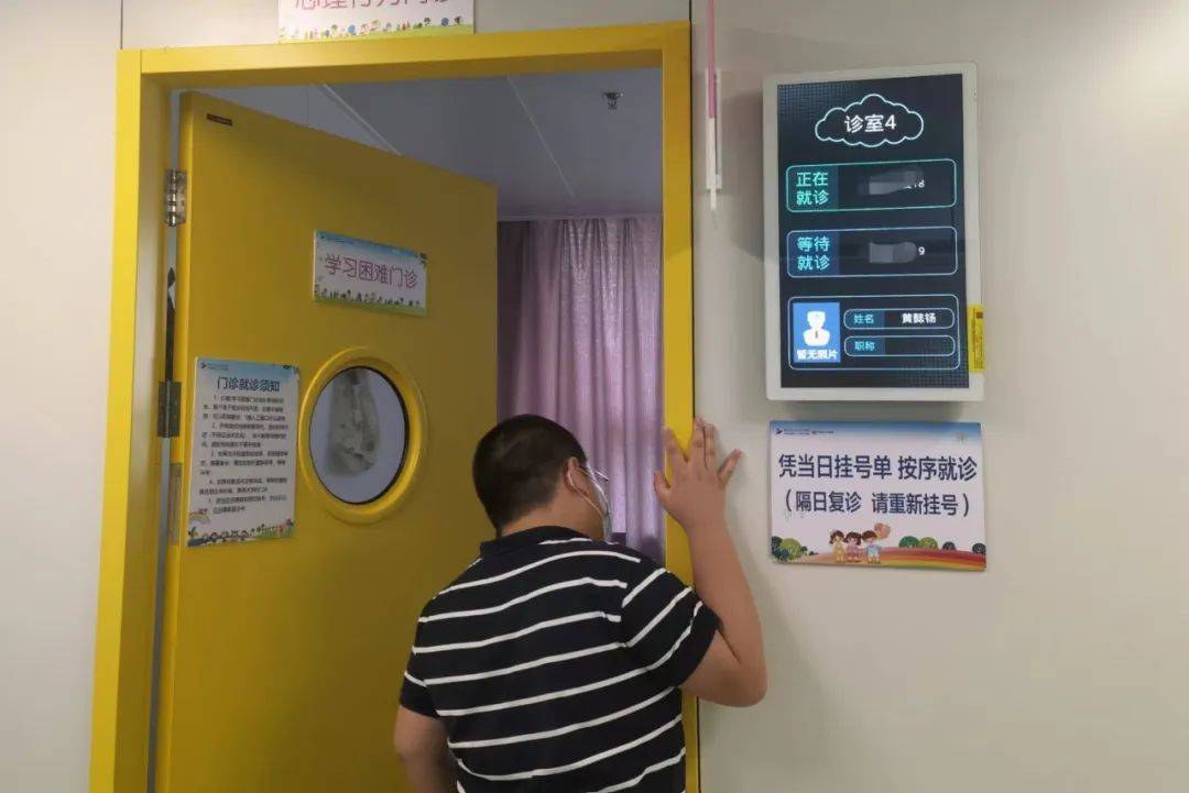 2022年8月16日,南京市儿童医院九楼大厅内的叫号电子屏显示“学习困难门诊”。新京报记者 李照 摄