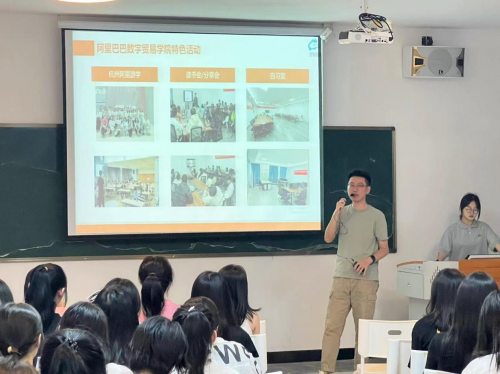 在开班宣讲会上,普特商科教育教研总监夏楠为在场新生介绍四年人才培养,产业学院基地导师介绍本学期规划,商科总经理买马总为在场新生进行了专业课程安排的讲解,帮助新生对自己未来学习的内容建立清晰的认知,同时还全面地分析目前电子商务行业现状及未来趋势。