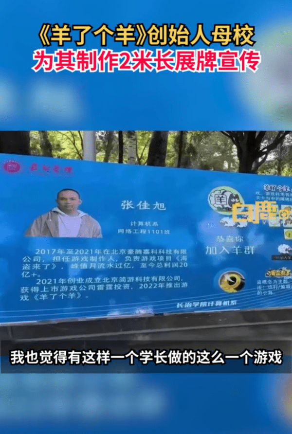原标题:羊了个羊创始人被母校制展牌宣传 张佳旭个人资料起底