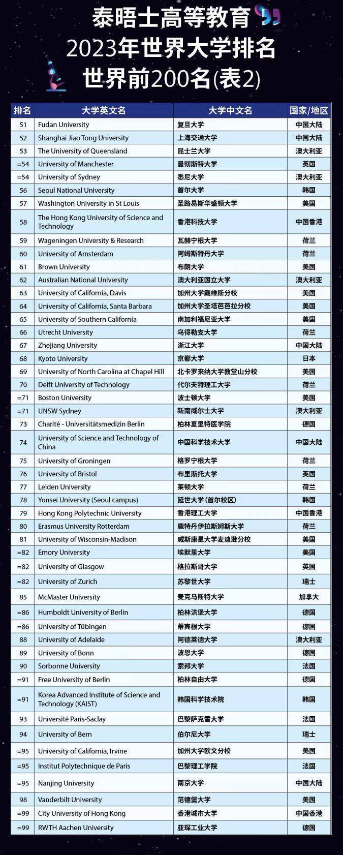 原标题:泰晤士2023年世界大学排名新鲜出炉 江苏省内哪些高校上榜?