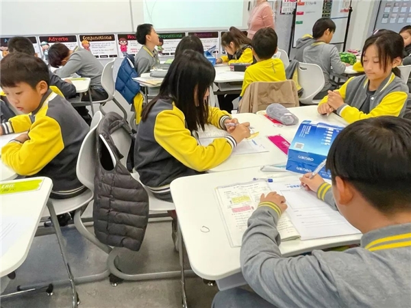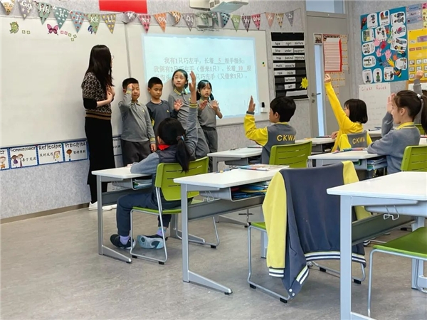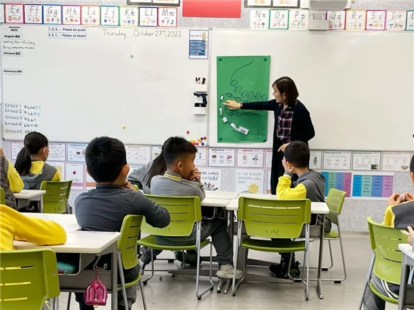 在低年级,不仅有中方、外方两位班主任,还会配备一位助教老师,每班24个孩子满班,师生比非常高