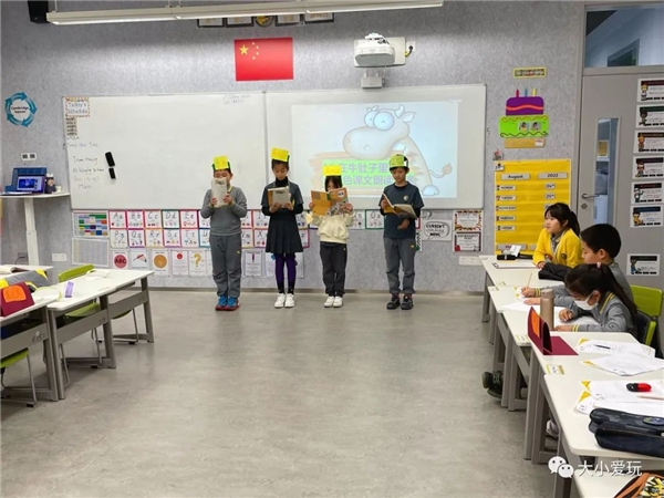 最让人印象深刻的,是四年级的“课本剧表演”。别误会,这可不是什么大型演出,只不过是常规课堂的一个环节。孩子们把学习的中国传统故事用表演的形式表现出来。