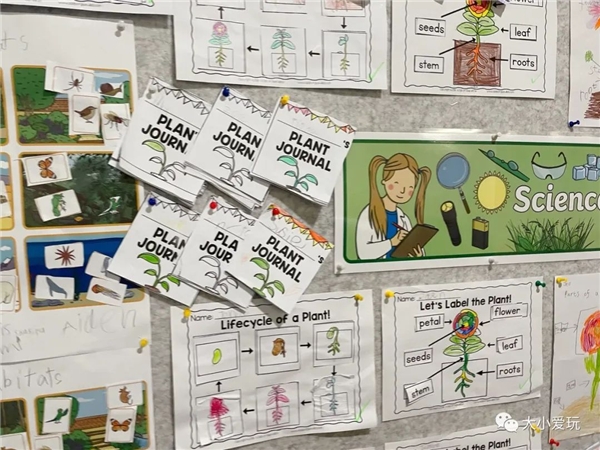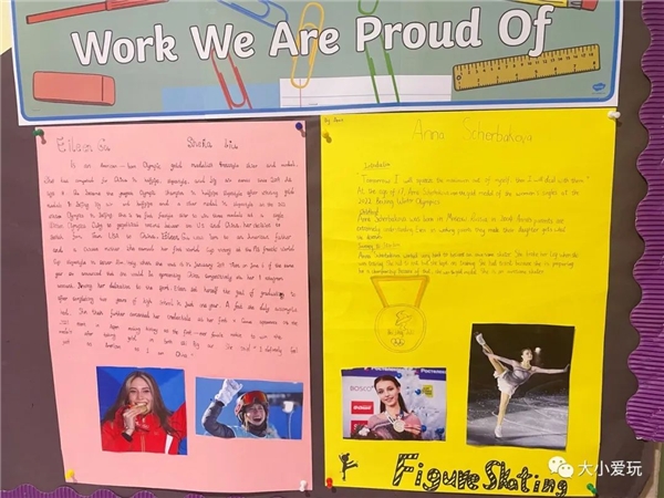 在朝阳凯文的小学部,每个班外墙上张贴的学生作品