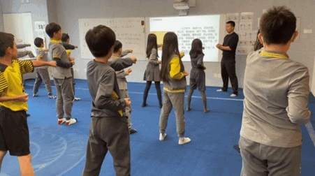 五年级的语文课恰好学到了《少年中国说》这篇课文,武术老师也来助阵,在武术教室里朗诵这篇梁启超的散文,气势、气魄都瞬间拉满。