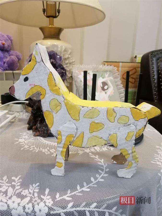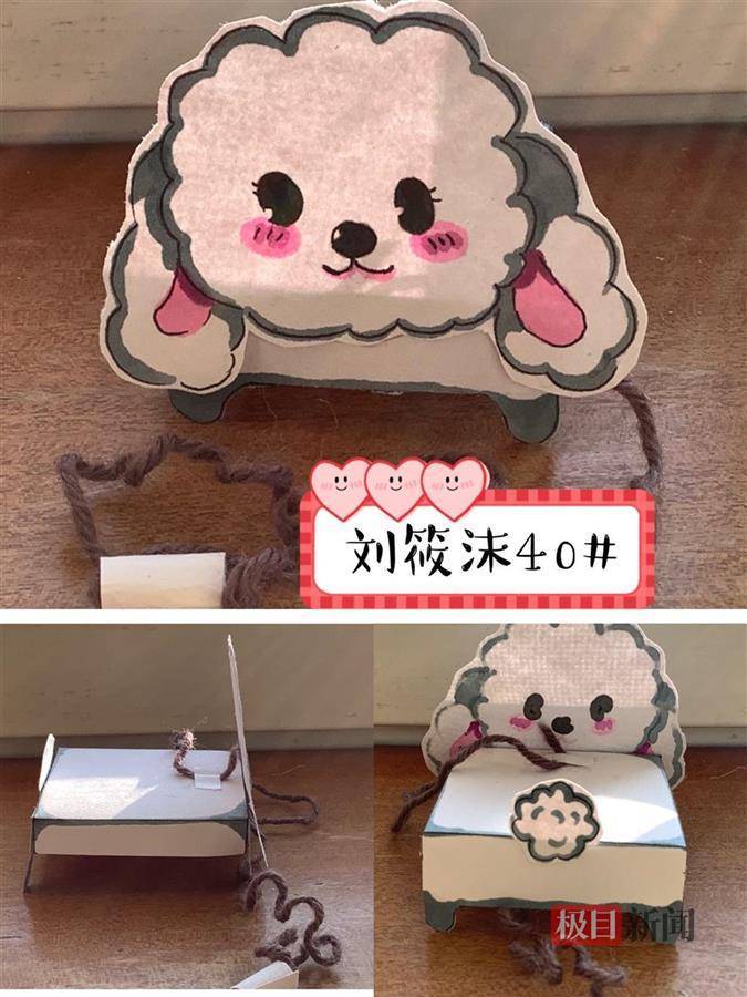 裁裁、剪剪、贴贴、画画,就把家中闲置的纸箱变成了一只只呆萌可爱的小狗。11月23日,极目新闻记者从湖北省武昌水果湖第二小学获悉,该校四年级(3)班的同学们在班主任李艳桃老师的组织和引导下,和家人一起用废旧纸箱制作造型各异的“萌狗”,宅家“遛狗”,通过自主设计、手工制作等一系列活动,锻炼想象力来释放压力,鼓励同学们在生活中发现乐趣,怡情养性,亲子互助,减轻焦虑。