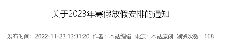 二、学生2023年1月1日(星期日)开始放假,2月12日(星期日)返校报到;2月13日(星期一)正式上课。