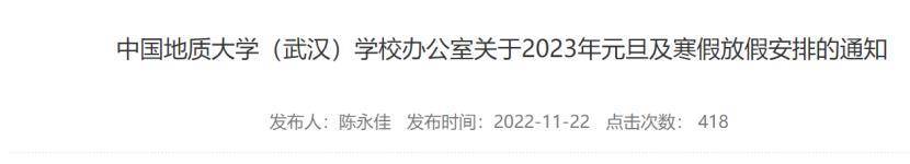 1.在校学生于 2022年12月31日(星期六)放假,2023年2月11日 (星期六)返校报到,2023年2月13日(星期一)正式上课。