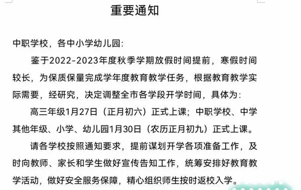 本来假期的时间就所剩不多,部分地方的中小学还宣布了要提前开学,甚至最早的在1月28日也就是正月初七就开始到校报到。