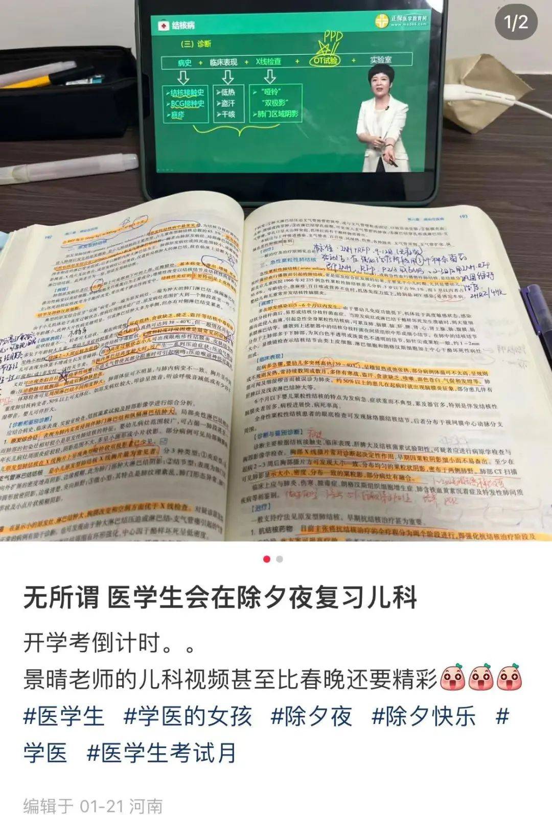在兔年春晚这种堪称折磨的BGM的陪伴下,医学生也能泰然自若地复习儿科,甚至还能同时锐评春晚:不如网课精彩。