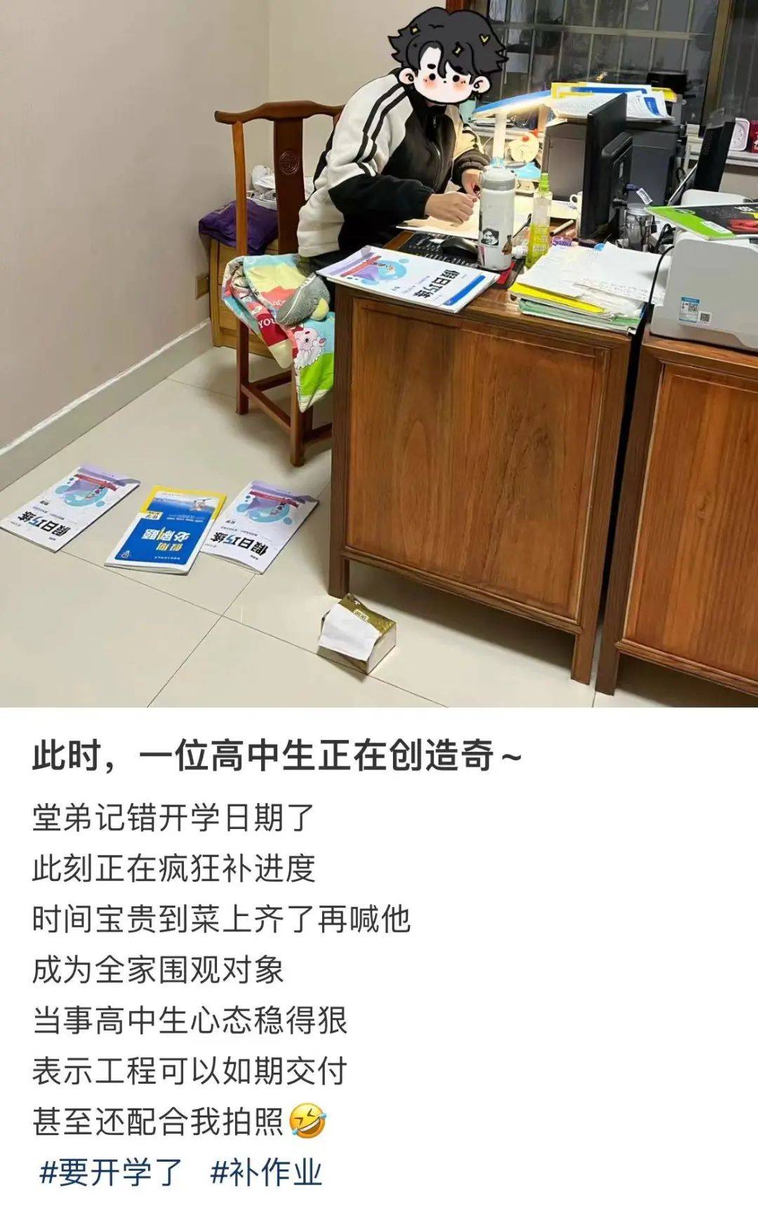 而中学生们为了补作业,坚毅的精神更是屡屡突破人类极限。