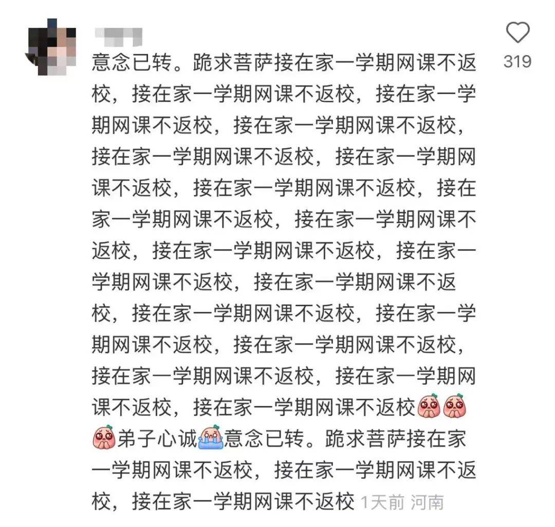 这群祈求延迟开学的可怜人在全平台悄悄蔓延扩散,甚至在外人眼里,已经发展成了某种无法理解的行为艺术。