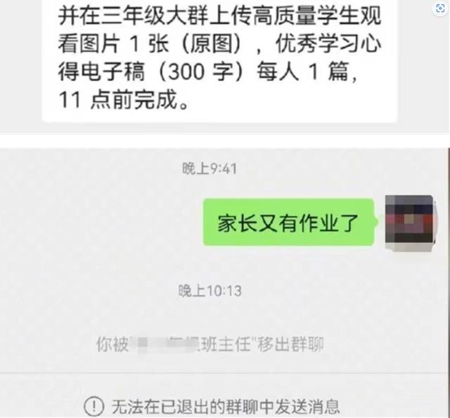 吐槽家长又有作业了被踢出群聊!教育局已介入 当事人:老师还曾打电话“兴