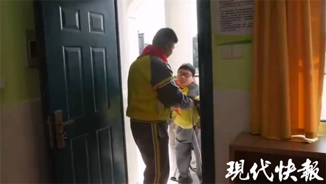 现代快报讯 扬州市田家炳实验中学初二(6)班学生杨仔阳,自小双腿患有疾病,无法正常行走。为了让他在校安心学习,学校将他所在的班级搬到了一楼,还专门为他改造了专用厕所。更让人暖心的是,班上的同学都成了杨仔阳的“双腿”,课间休息时推他去上厕所,吃午饭时帮他去打饭,甚至带着他一起去上体育课。