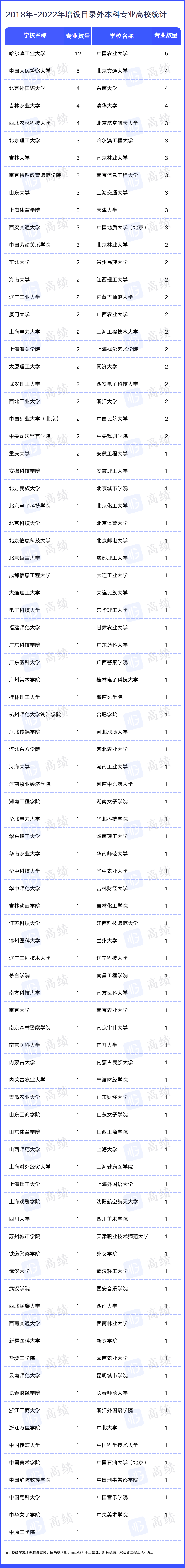 增设目录外新专业作为学科发展和专业建设的风向标,一直备受关注。高绩收集整理了2018-2022年全国高校增设的目录外新专业。