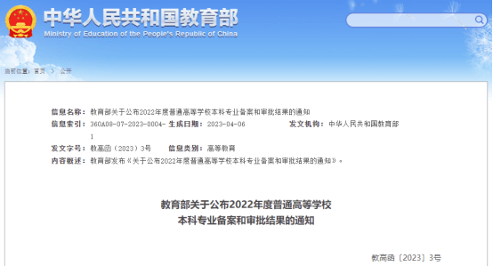 摘要: 原标题:全国首批!这些大学抢先上新 一起来瞅瞅 近日,教育部公布2022年度普通高等学校本科专业备案和审批结果,新增备案专业1641个、审批专业176个(