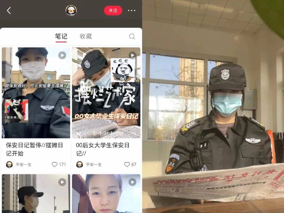 而平安将自己的保安生活一发到小红书,也引发了一批同龄人的“羡慕”。