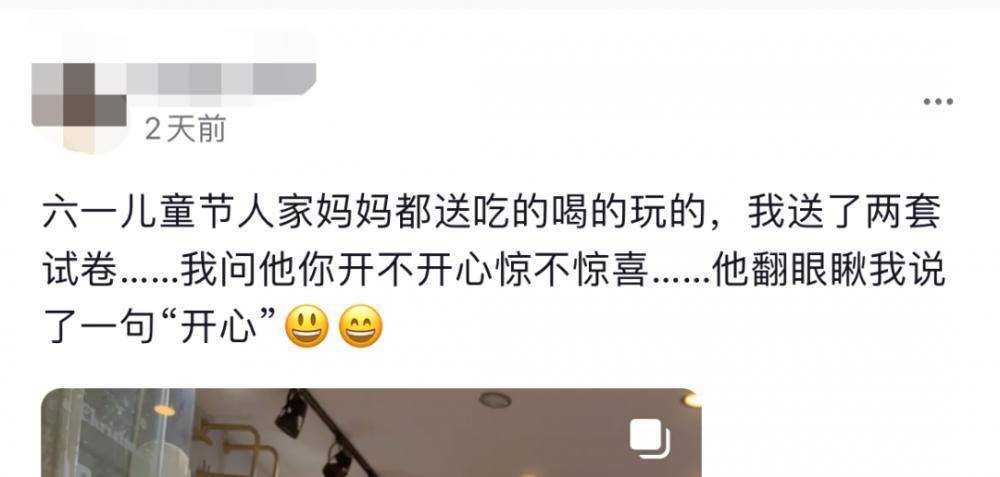 还有那些打着庆祝节日的旗号给孩子增加兴趣课程的做法,只是商家借以营销的噱头。还有家长以此为乐趣,“你的儿童节神秘礼物是——名校密卷一套!”甚至拍下孩子从惊喜到失落的表现,不顾孩子的情绪,发布在短视频平台上。