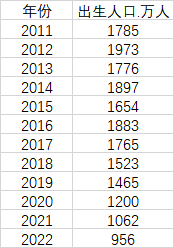 表:2011年以来历年出生人口数据